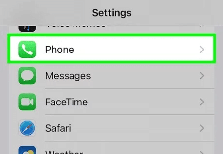 • Scroll Down to ‘Phone’: Tap on “Phone” to access phone settings.