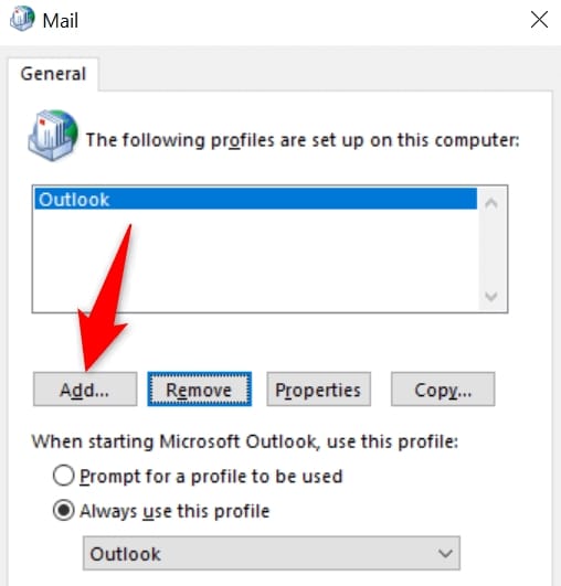 If fixing the data file didn’t resolve your problem, your current Outlook user profile might be corrupted. This is the most common reason you get a 0x8004010f error in the app. In this case, you can create and use a new profile in Outlook to fix your issue.