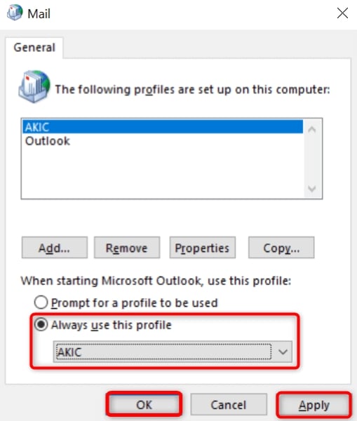 2. Create and Use a New Outlook Profile